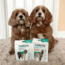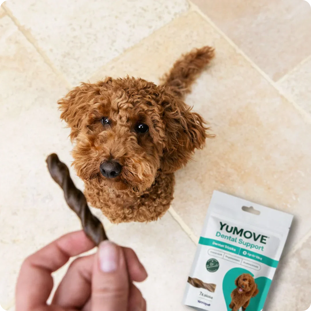 YuMOVE's range of dental care products helps tackle these concerns, with options to suit every dog’s taste. Our daily dental sticks provide a convenient, daily chew that helps freshen breath, and reduce plaque and tartar build-up, while the daily dental care powder is perfect for mixing with your dog's food for effortless oral hygiene support. By adding these products into your pet's routine, you can help keep their teeth clean and healthy.